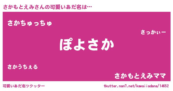 | 男性向けラノベタイトル風あだ名 | 『この素晴らしい世界にさかもとえみを!』 |