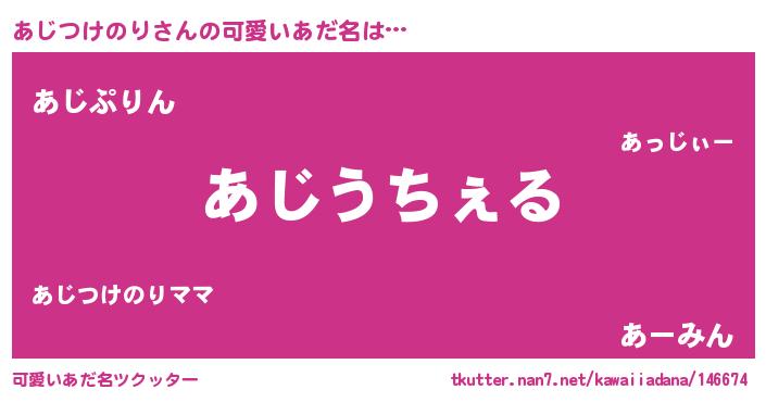 | ヘコむあだ名 | 『あじっ子』『あじつけのり(笑)』 |