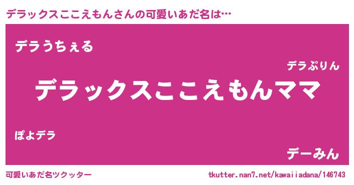 | 男性向けラノベタイトル風あだ名 | 『デラックスここえもんという概念が存在しない退屈な世界 』 |