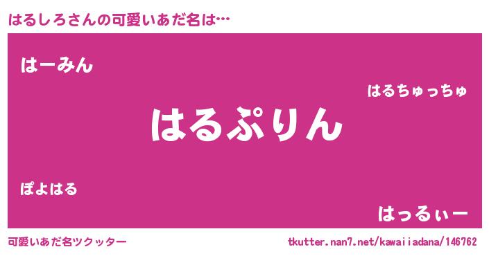 | 男性向けラノベタイトル風あだ名 | 『はるしろに滅ぼされるだけの簡単なお仕事です』 |