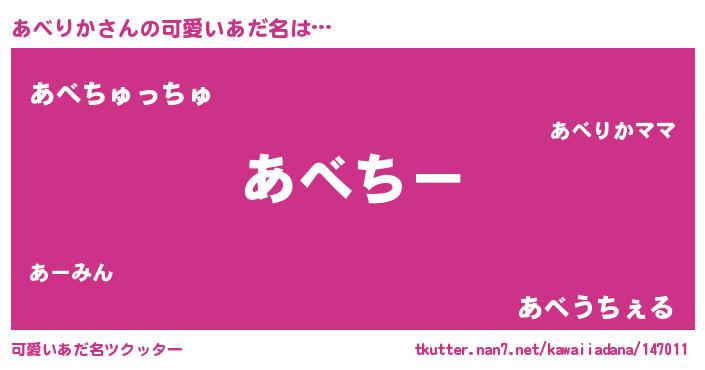 | 意味不明あだ名 | 『あべりかフォーエバー』『自称あべりか』 |
