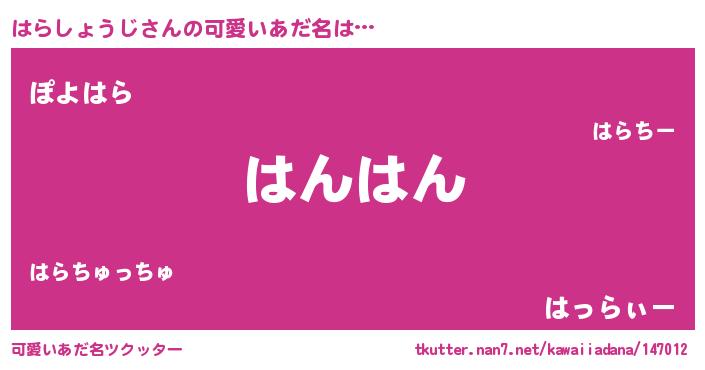 | 恥ずかしいあだ名 | 『プリティーはらしょうじ』『はらっちょ』 |