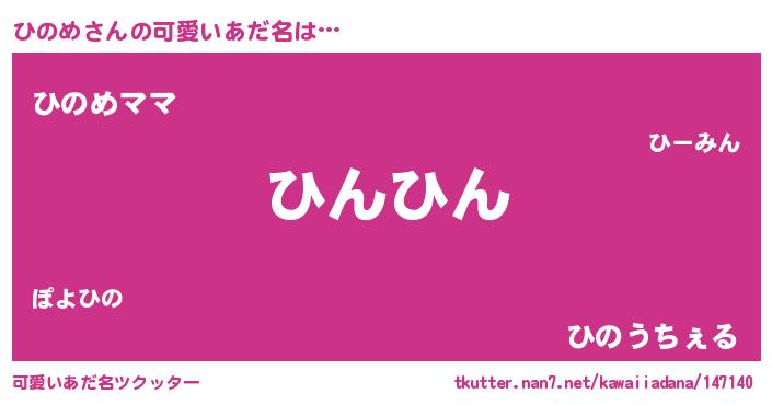 | 意味不明あだ名 | 『ペロリンひのめ』『永久保存ひのめ』 |