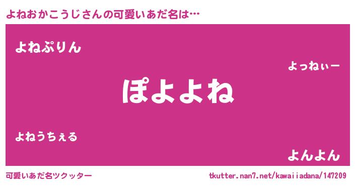 | 恥ずかしいあだ名 | 『プリティーよねおかこうじ』『よねちん』 |