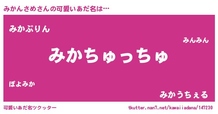 | ヘコむあだ名 | 『みかにー』『みかんさめ(小並感)』 |