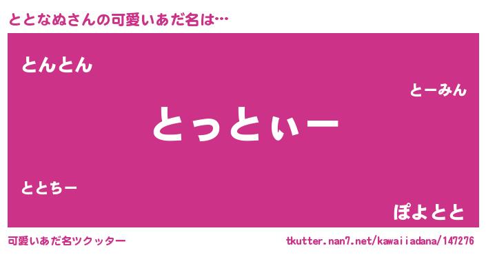 | 男性向けラノベタイトル風あだ名 | 『ととなぬの嫁は女の子じゃないと思った?』 |