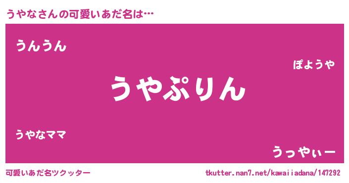 | 男性向けラノベタイトル風あだ名 | 『うやな~年齢イコール彼女いない歴の魔法使い~』 |