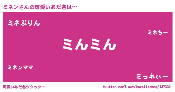 | 男性向けラノベタイトル風あだ名 | 『ミネンの憂鬱』『はたらくミネンさま!』 |