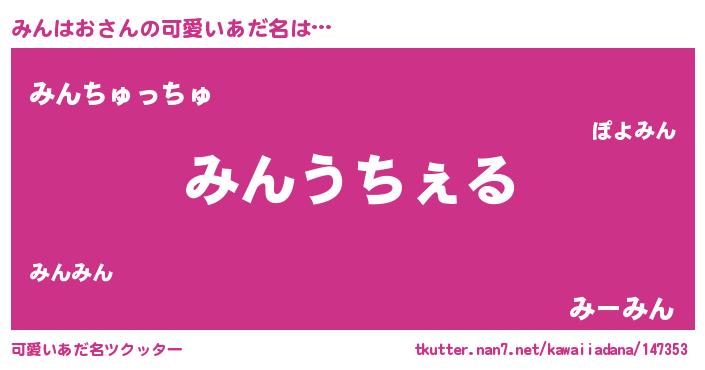 | 意味不明あだ名 | 『自称みんはお』『ペロリンみんはお』 |