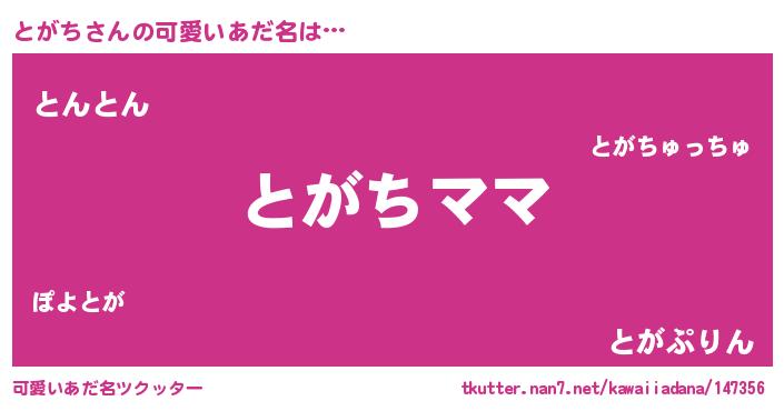 | ヘコむあだ名 | 『とがち(笑)』『とがもー』『とがを』 |