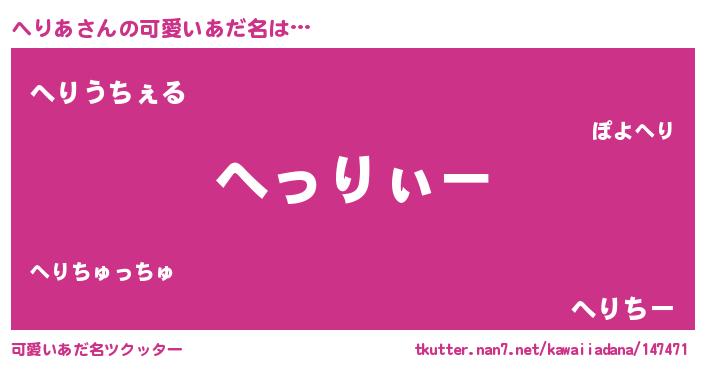 | 意味不明あだ名 | 『とにかく怪しいへりあ』『自称へりあ』 |