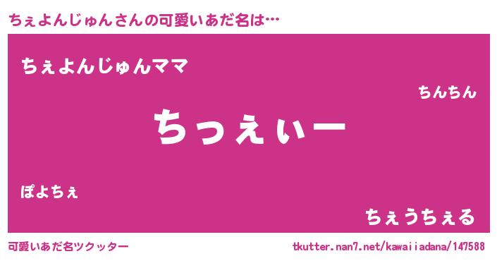 | 男性向けラノベタイトル風あだ名 | 『ちぇよんじゅんの嫁は女の子じゃないと思った?』 |