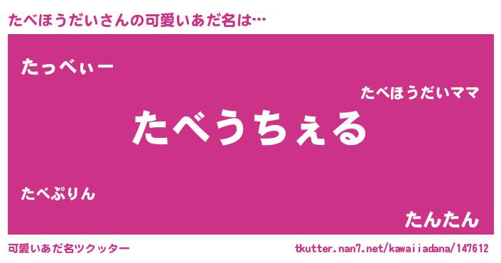 | ポケモン風あだ名 | 『タベゴンZ』『タベセウス』 |