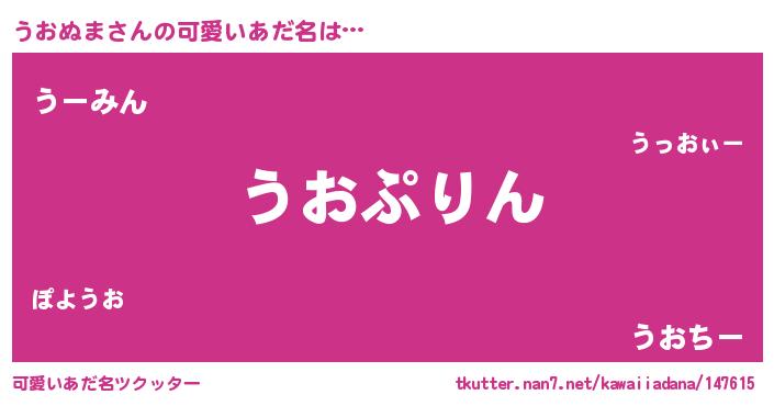 | 料理風あだ名 | 『うおぬまごはん』 |