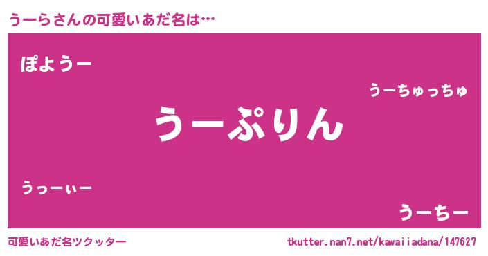 | 男性向けラノベタイトル風あだ名 | 『転生したらうーらだった件』 |