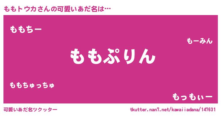 | 男性向けラノベタイトル風あだ名 | 『ももトウカに滅ぼされるだけの簡単なお仕事です』 |