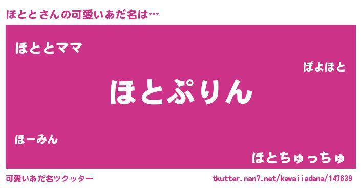 | 意味不明あだ名 | 『めかぶ科ほとと属』『永久保存ほとと』 |