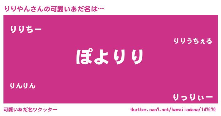 | ヘコむあだ名 | 『豆乳』『りりを』『りりもー』 |