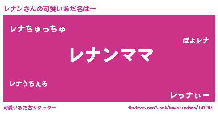 | ヘコむあだ名 | 『レナン(小並感)』『レナぷりん』 |