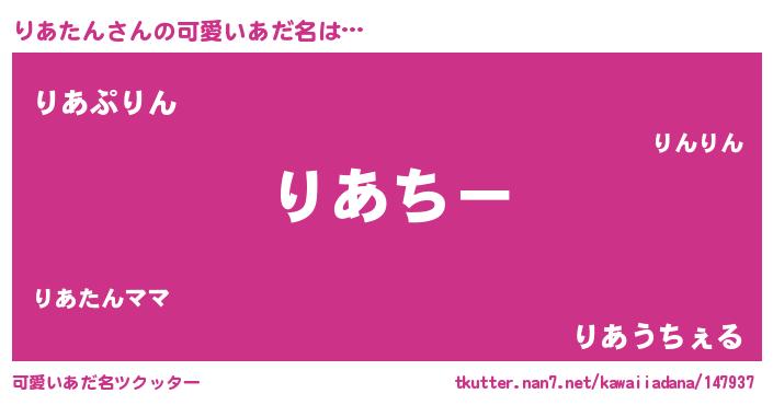 | 意味不明あだ名 | 『りあたんフォーエバー』『自称りあたん』 |