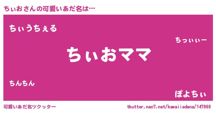 | ヘコむあだ名 | 『ちぃお(苦笑)』『ちぃっぺ』 |