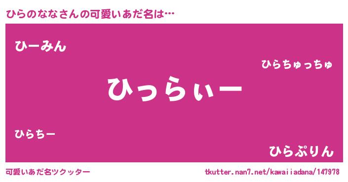 | ポケモン風あだ名 | 『ヒヒラノナナ』『メロヒッラ』 |