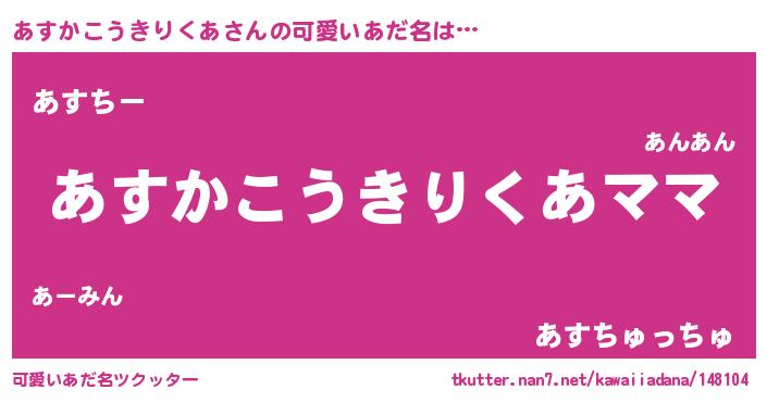 | 意味不明あだ名 | 『永久保存あすかこうきりくあ』 |