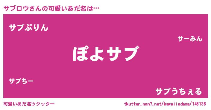 | 恥ずかしいあだ名 | 『サブロウデラックス』『サブっちょ』 |