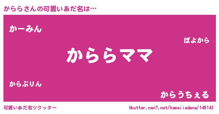 | ヘコむあだ名 | 『からら(笑)』『牛乳』『からもー』 |