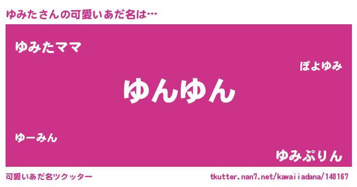 | 意味不明あだ名 | 『ペロリンゆみた』『永久保存ゆみた』 |