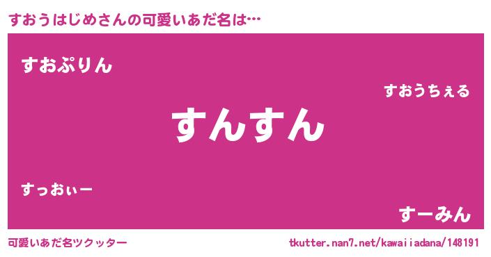 | 恥ずかしいあだ名 | 『プリティーすおうはじめ』『すおちん』 |
