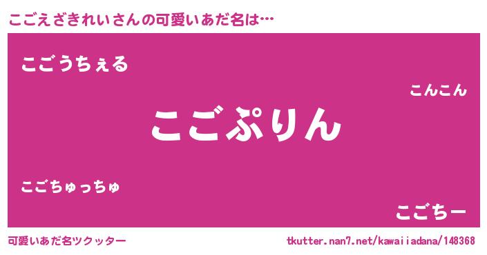 | ヘコむあだ名 | 『なまこ酢』『こごっふぃ~』 |
