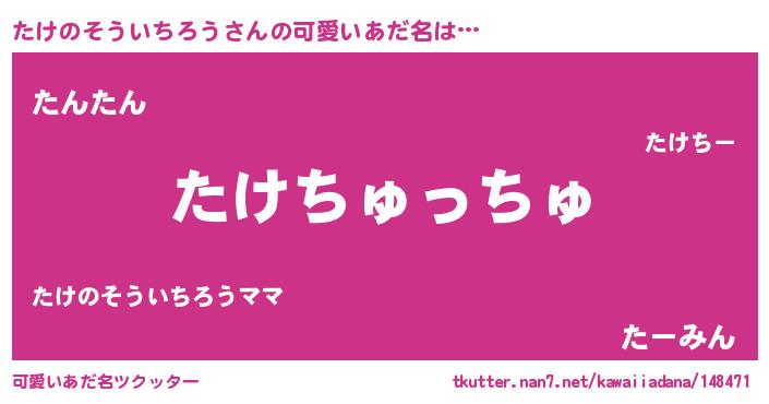 | ヘコむあだ名 | 『たけもー』『なまこ酢』『たけを』 |