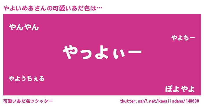 | ポケモン風あだ名 | 『ヒヤヨイメア』『ヤヨチュウ』 |