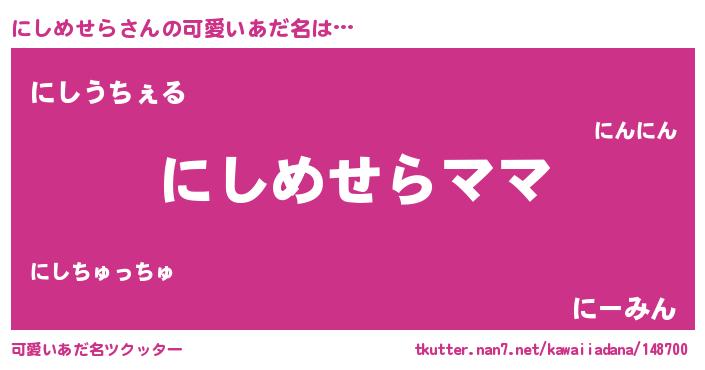 | 意味不明あだ名 | 『永久保存にしめせら』『自称にしめせら』 |