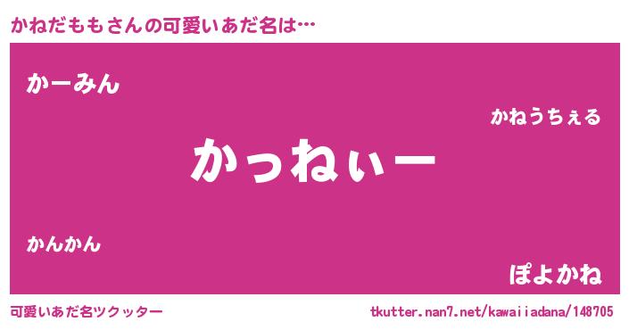 | 女子向けラノベタイトル風あだ名 | 『かねだももの卵を拾いまして』 |