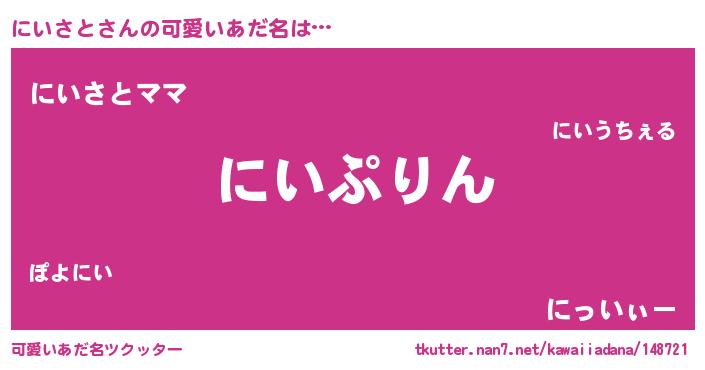 | 男性向けラノベタイトル風あだ名 | 『転生したらにいさとだった件』 |