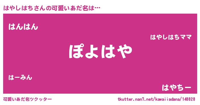 | 恥ずかしいあだ名 | 『プリティーはやしはち』『はやっちょ』 |