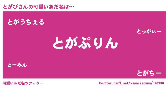 | ポケモン風あだ名 | 『トガキング』『トガセウス』 |