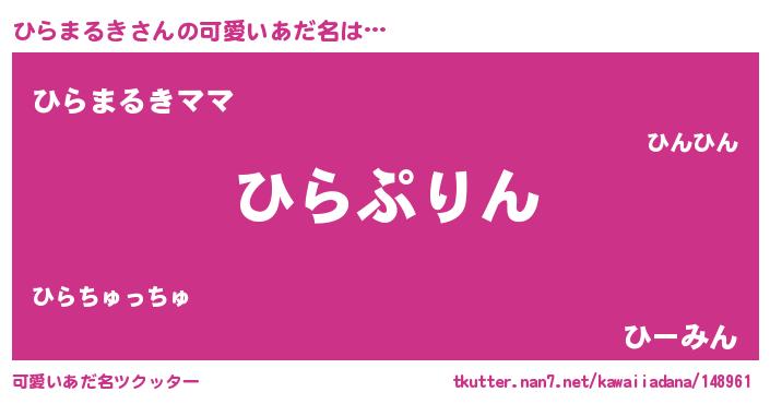 | 恥ずかしいあだ名 | 『ひらちん』『プリティーひらまるき』 |
