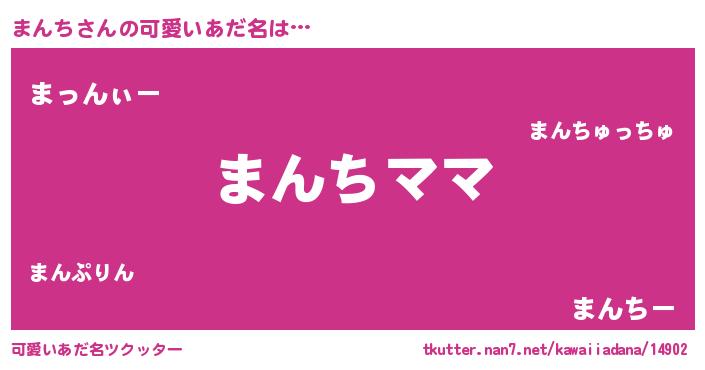| 女子向けラノベタイトル風あだ名 | 『まんちの契約王妃』『死神まんちの再婚』 |