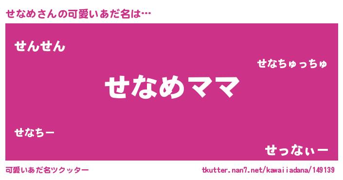 | 恥ずかしいあだ名 | 『せなちん』『プリティーせなめ』 |