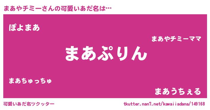 | ヘコむあだ名 | 『まあやチミー(苦笑)』『まあにー』 |