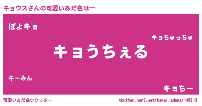 | ヒーロー風カッコイイあだ名 | 『ウルトラ戦士キョウス』『仮面キョダー』 |