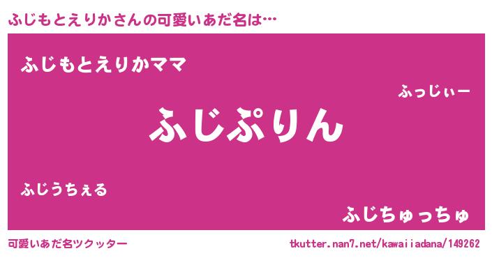 | ヘコむあだ名 | 『ふじもとえりか(遠い目)』『ふじぷりん』 |