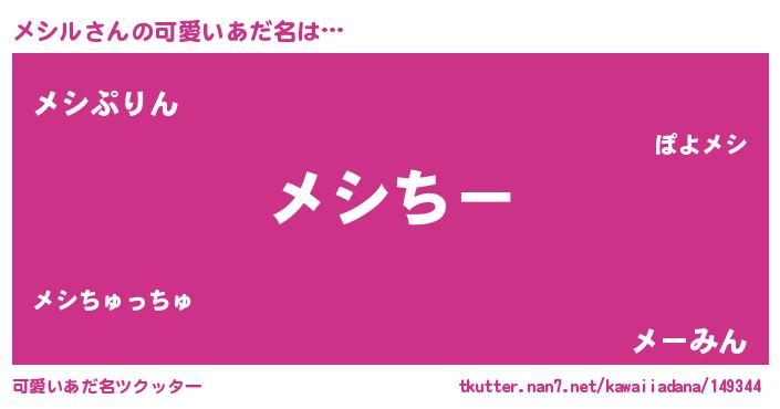 | 意味不明あだ名 | 『メシルフォーエバー』『ペロリンメシル』 |