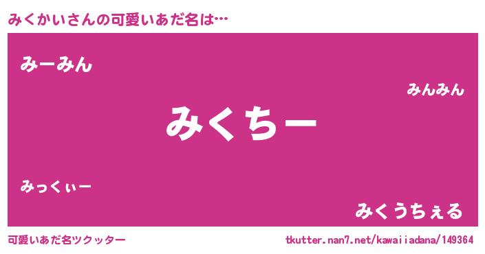 | 女子向けラノベタイトル風あだ名 | 『みくかいの雑貨屋さん』『闇のみくかい』 |