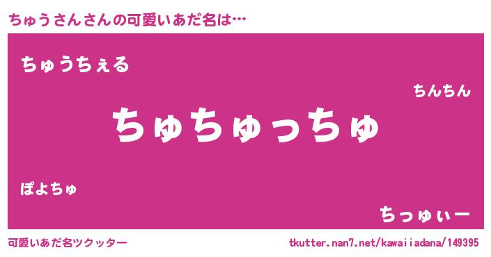 | ヒーロー風カッコイイあだ名 | 『慈愛の使者ちゅうさん』『暗黒騎士チュ』 |
