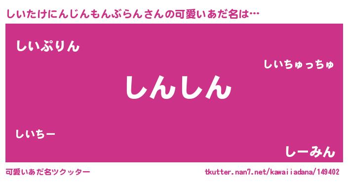 | 恥ずかしいあだ名 | 『プリティーしいたけにんじんもんぶらん』 |