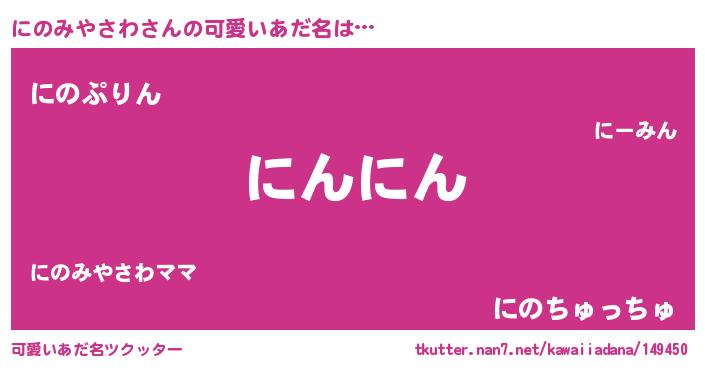 | 女子向けラノベタイトル風あだ名 | 『(仮)にのみやさわのやんごとなき事情』 |